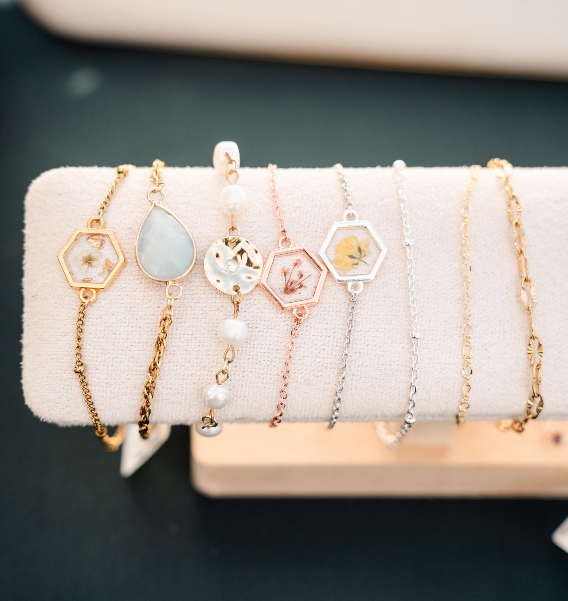 Wrap your wrist in natural beauty with our Flower in Resin Bracelets. Featuring real, hand-pressed flowers preserved in crystal-clear resin, each bracelet captures a one-of-a-kind bloom frozen in time. Delicate yet durable, these pieces offer a unique blend of organic charm and timeless craftsmanship—perfect for everyday wear or thoughtful gifting.