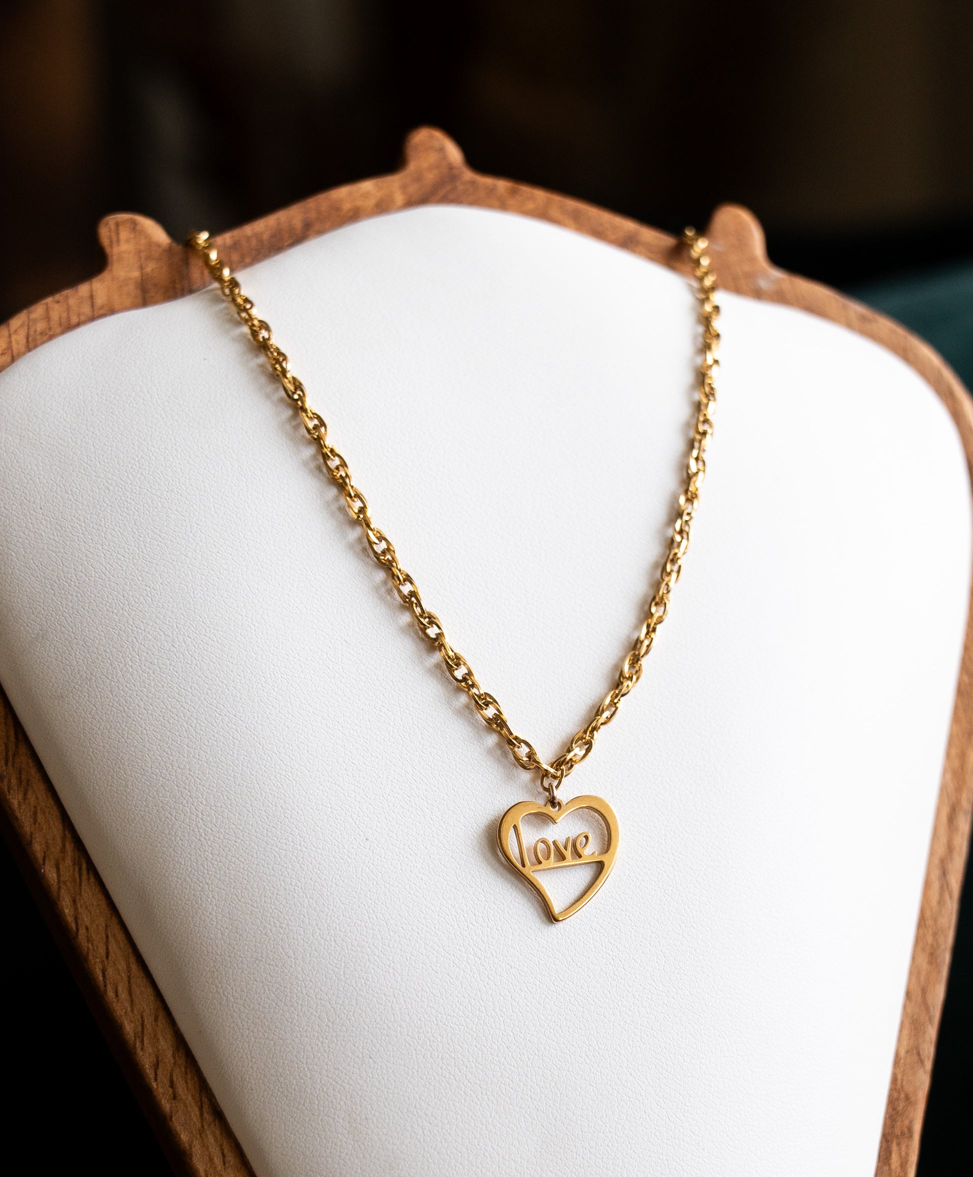 This stainless steel necklace features a durable rope chain design paired with a delicate "love" charm, combining strength with meaningful elegance. Crafted for lasting wear, it offers a timeless accessory that complements any outfit while symbolizing affection and connection. Ideal for everyday use or special occasions, this piece balances style and sentiment with expert craftsmanship.